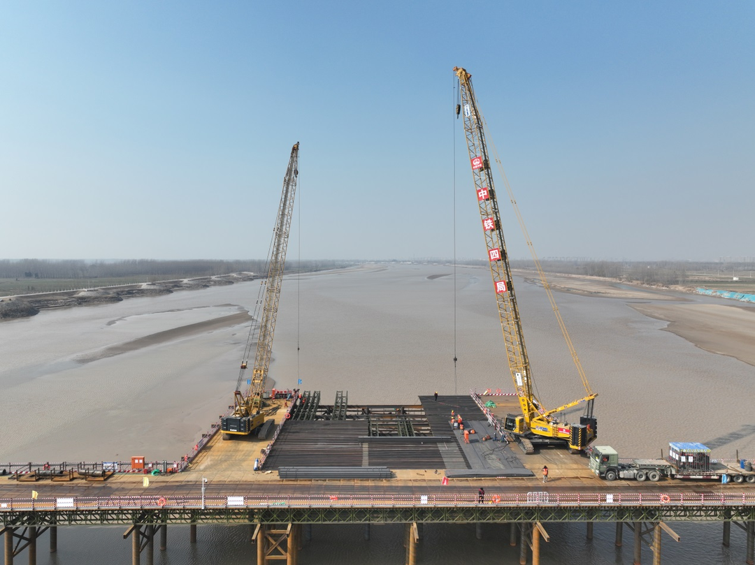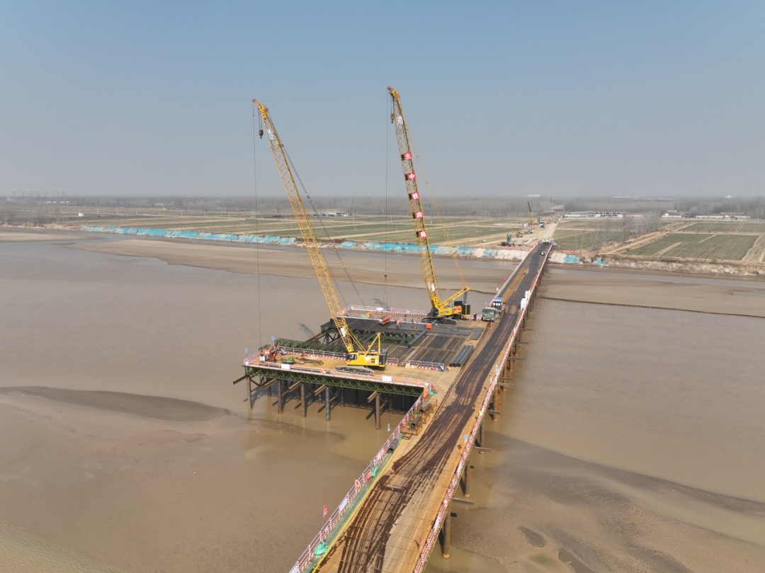 近日,京雄商高鐵雄商段黃河主橋水中墩首樁完工。